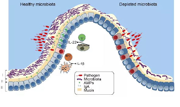 優(yōu)質(zhì)生物發(fā)酵飼料中β-葡聚糖、甘露寡糖、小肽、氨基酸、維生素、細(xì)菌素等代謝產(chǎn)物具有固筑口鼻黏膜屏障,增強黏膜免疫功能;具有激化單核細(xì)胞,提高免疫屏障功能和健康水平,提高堵截病原微生物侵入機體的能力。
