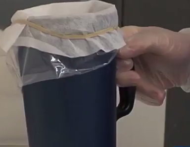 (4)準(zhǔn)備采精杯。準(zhǔn)備一個(gè)新的集精袋,貼壁套在干凈的采精杯內(nèi)。使用精液過濾紙(或無菌紗布)覆蓋在采精杯上,用一條新的橡皮筋固定。