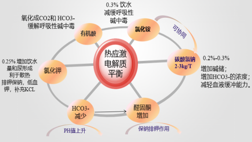 蛋雞無汗腺,在夏季高溫季節(jié),蛋雞熱應(yīng)激是以呼吸道散熱為主,熱喘息中,CO2呼出過多,以至血液中的CO2減少,NaHCO3和H2CO3比例改變,即血液中PH值改變,進而發(fā)生呼吸性堿中毒。