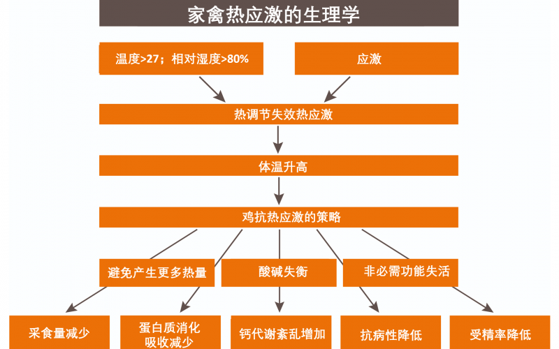 1 家禽熱應(yīng)激的生理學(xué)                                     圖2  夏季高溫?zé)釕?yīng)激對(duì)蛋雞的危害