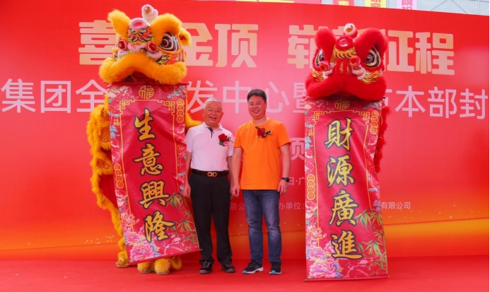 播恩集團董事長鄒新華和蔣宗勇理事長為封頂儀式進行了醒獅點睛。