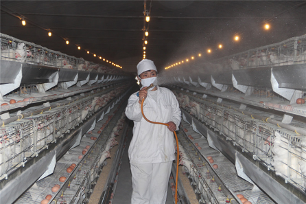 由于冬春交替時(shí)節(jié)天氣仍舊寒冷,畜禽圈舍常常處于封閉狀態(tài),空氣流通性比較差,加之圈舍內(nèi)部陰暗、潮濕、寒冷,因此極易引發(fā)呼吸道傳染病,所以,防止疫病發(fā)生至關(guān)重要。要定期對(duì)畜舍進(jìn)行消毒,保證飼養(yǎng)環(huán)境的清潔衛(wèi)生。推薦每周用過(guò)氧乙酸、播恩酸化劑、百毒殺、或者戊二醛對(duì)圈舍消毒一次,消毒劑應(yīng)該交替使用,避免病原菌和病毒對(duì)消毒劑產(chǎn)生耐藥性。每次清理料槽后,使用聚維酮碘對(duì)料槽進(jìn)行消毒。此外為了避免因?yàn)槿说脑驅(qū)е录倚笊。ぷ魅藛T每次進(jìn)出畜舍之前,都要到消毒間進(jìn)行消毒,消毒間內(nèi)設(shè)超聲波霧化消毒系統(tǒng),消毒間外以及圈舍外部地面鋪設(shè)生石灰。要經(jīng)常觀(guān)察家畜的精神狀態(tài)、食欲、糞便等情況,及時(shí)發(fā)現(xiàn)疫情,及時(shí)治病。