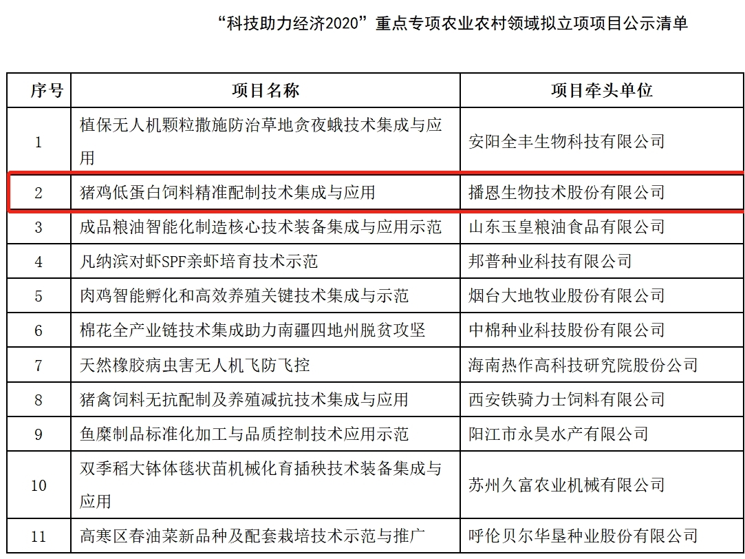 2022年12月22日,農(nóng)業(yè)農(nóng)村部科技教育司組織專家對播恩集團牽頭承擔(dān)的農(nóng)業(yè)農(nóng)村部重點專項研發(fā)項目“豬雞低蛋白飼料精準(zhǔn)配制技術(shù)集成與應(yīng)用”舉行了驗收會議。項目順利通過了專家組的評審,并獲得了84.14的優(yōu)異成績。