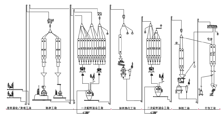 生物發(fā)酵飼料具有適口性高易于消化的特點(diǎn),現(xiàn)階段被廣泛應(yīng)用于生豬的養(yǎng)殖。因其富含益生菌、活性肽、復(fù)合酶等熱敏性生物活性物質(zhì),所以加工過程中對加工溫度有著嚴(yán)格的要求。精細(xì)化生物發(fā)酵料的加工工藝不但能最大限度的保持飼料中生物活性物質(zhì)的效價,還能提高豬只對飼料原料的利用率和生產(chǎn)性能,從而提升養(yǎng)殖效益。除了傳統(tǒng)的包被和噴涂工藝外,還有高效調(diào)制低溫冷制粒工藝,通過加工工藝的細(xì)化能最大程度減少熱敏性原料的營養(yǎng)損失,以及生物活性物質(zhì)的失活。圖3是低溫制粒飼料流程圖(引自段海濤)。