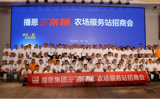 8月28日,播恩集團(tuán)副總裁/營(yíng)銷中心總監(jiān)曹劍波與集團(tuán)各戰(zhàn)區(qū)總監(jiān)攜一百余名客戶在浙江杭州召開播恩集團(tuán)一條鞭農(nóng)場(chǎng)服務(wù)站招商會(huì)。