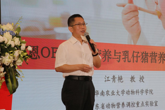 緊隨其后,華南農(nóng)業(yè)大學(xué)動物科學(xué)院院長江青艷的報告《乳仔豬營養(yǎng)調(diào)控的關(guān)鍵點》再次俘獲了全場的目光。為什么要強調(diào)OEN效能營養(yǎng)?江院長以從業(yè)者都非常關(guān)心的仔豬腹瀉問題入手,以“采食量的營養(yǎng)調(diào)控”和“腸道健康的營養(yǎng)調(diào)控”兩個章節(jié),闡述了影響仔豬采食、消化能力的重要因素,展示了多項業(yè)內(nèi)先進的研究成果,并指出了一些長期存在的認(rèn)識誤區(qū)。最后,他作了兩點總結(jié):