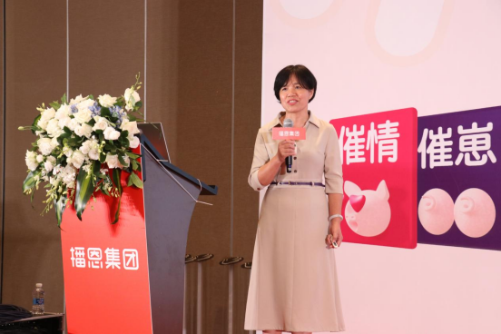播恩集團顧問倪冬姣女士作《播恩合成生物技術(shù)在三催母豬料上的運用》報告,她介紹了播恩集團合成生物技術(shù)的發(fā)展歷程、研發(fā)團隊、所獲得的榮譽和研發(fā)成果,并詳細(xì)介紹了播恩三催種豬料的實踐成果,讓現(xiàn)場與會聽眾對于三催種豬料的實際應(yīng)用有了更加鮮活的認(rèn)知。