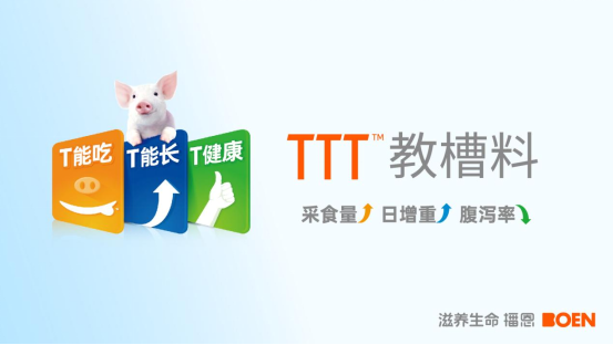 播恩集團(tuán),是仔豬配合飼料國家標(biāo)準(zhǔn)和團(tuán)體標(biāo)準(zhǔn)制定者,長期專注于幼小動物營養(yǎng)領(lǐng)域,堅持科技創(chuàng)新、品質(zhì)至上的發(fā)展理念,不斷投入研發(fā)資源,以生物技術(shù)為支撐,致力于為行業(yè)提供高品質(zhì)、高效能的教槽料產(chǎn)品。其中以TTT教槽料表現(xiàn)尤為出色,產(chǎn)品以“T 能吃、T 能長、T 健康”的3T優(yōu)勢著稱。“T能吃”,TTT教槽料中含有20%以上的乳制品,其營養(yǎng)和口感近似母乳,再加上獨特配方融合了粉料與粒料的長處,仔豬們十分喜愛。“T能長”則得益于其采用的OEN效能營養(yǎng)技術(shù)體系,以及原料預(yù)消化加工工藝,能讓仔豬吃得好,長得壯。而“T健康”,是由于它是無抗飼料且無豬同源蛋白,同時添加了電解質(zhì)平衡劑、造血活性物質(zhì)、高含量的免疫促進(jìn)物質(zhì)(如免疫球蛋白、植物提取物、黃酮、多糖等)與抗應(yīng)激劑等科學(xué)成分,為仔豬的健康成長構(gòu)建了堅實的屏障。