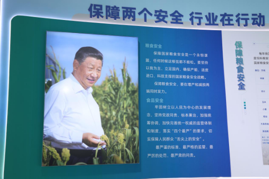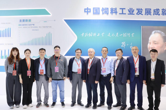 播恩集團(tuán)董事長鄒新華(左四)于中國飼料工業(yè)協(xié)會成立40周年主題展區(qū)現(xiàn)場