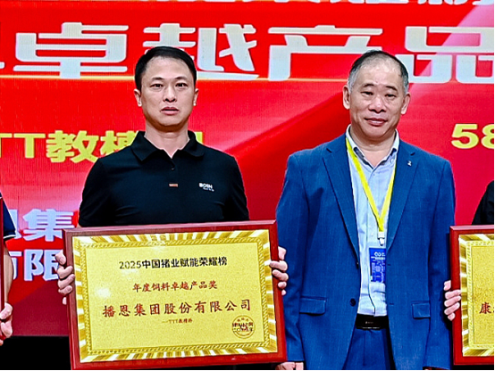 10月17日,2025中國(guó)豬業(yè)賦能大會(huì)暨賦能榮耀頒獎(jiǎng)盛典在長(zhǎng)沙隆重舉行。超過(guò)200位行業(yè)領(lǐng)導(dǎo)、專家、企業(yè)家等蒞臨本次盛典,并共同見(jiàn)證了2025中國(guó)豬業(yè)賦能榮耀榜獲獎(jiǎng)名單的公布。其中,播恩集團(tuán)TTT教槽料榮獲2025年度飼料卓越產(chǎn)品獎(jiǎng)。